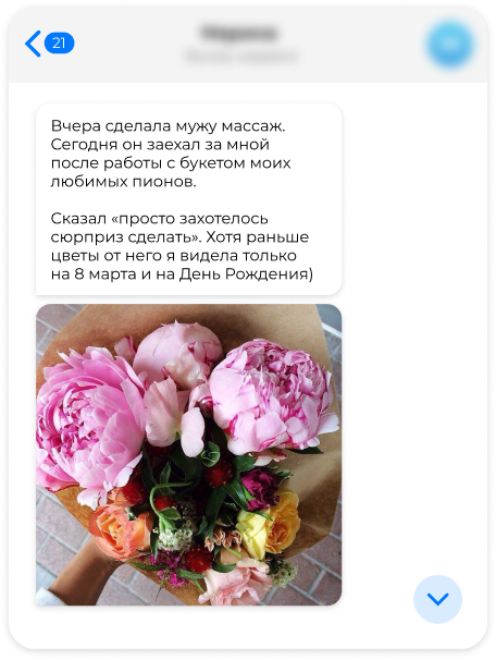 Вчера сделала мужу массаж. Сегодня он заехал за мной после работы с букетом моих любимых пионов.